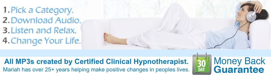 Within minutes you could be enjoying high quality hypnotherapy downloads for any of the issues listed below. All the self hypnosis downloads we sell are produced & directed by Mariah a Certified Clinical Hypnotherapist. With over 32 years of experience in the fields of personal growth, psychology, addictions & the healing arts, she has helped hundreds of people achieve happier & healthier lives through her hypnotherapy. See what people are saying. To get started Just click on the issue below & be on your way towards making positive changes in your life. We hope that you will be Journeys Inward Hypnotherapy's next success story.